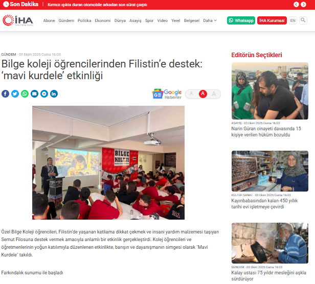 FİLİSTİN İÇİN MAVİ KURDELE