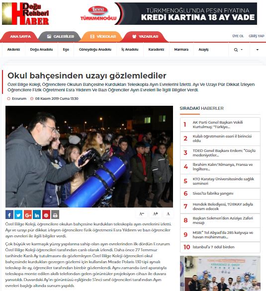 OKUL BAHÇESİNDEN UZAYI GÖZLEMLEDİLER