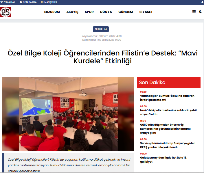 FİLİSTİN İÇİN MAVİ KURDELE